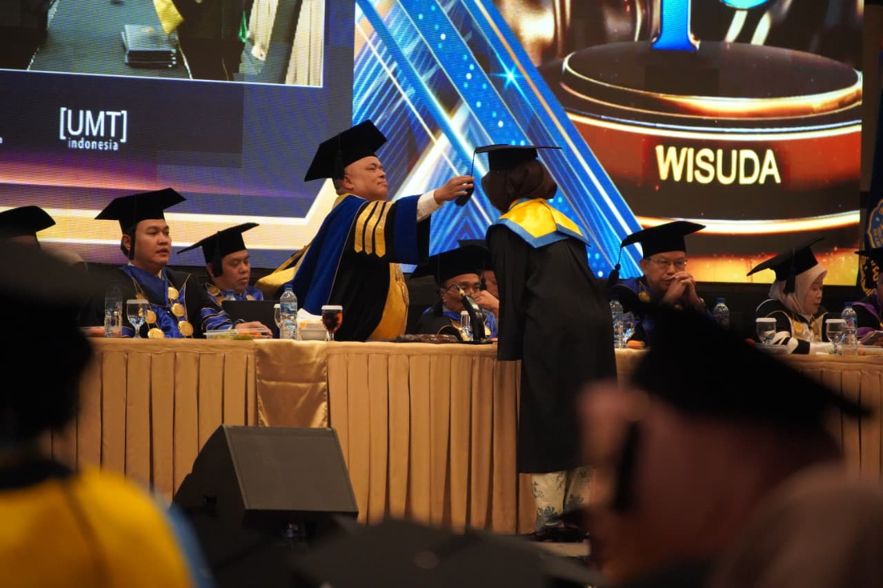 Dalam sambutannya, Rektor UMT, Assoc. Prof. Dr. H. Desri Arwen, M.Pd., menegaskan bahwa wisuda bukanlah akhir dari proses belajar, melainkan awal dari kontribusi nyata di masyarakat.