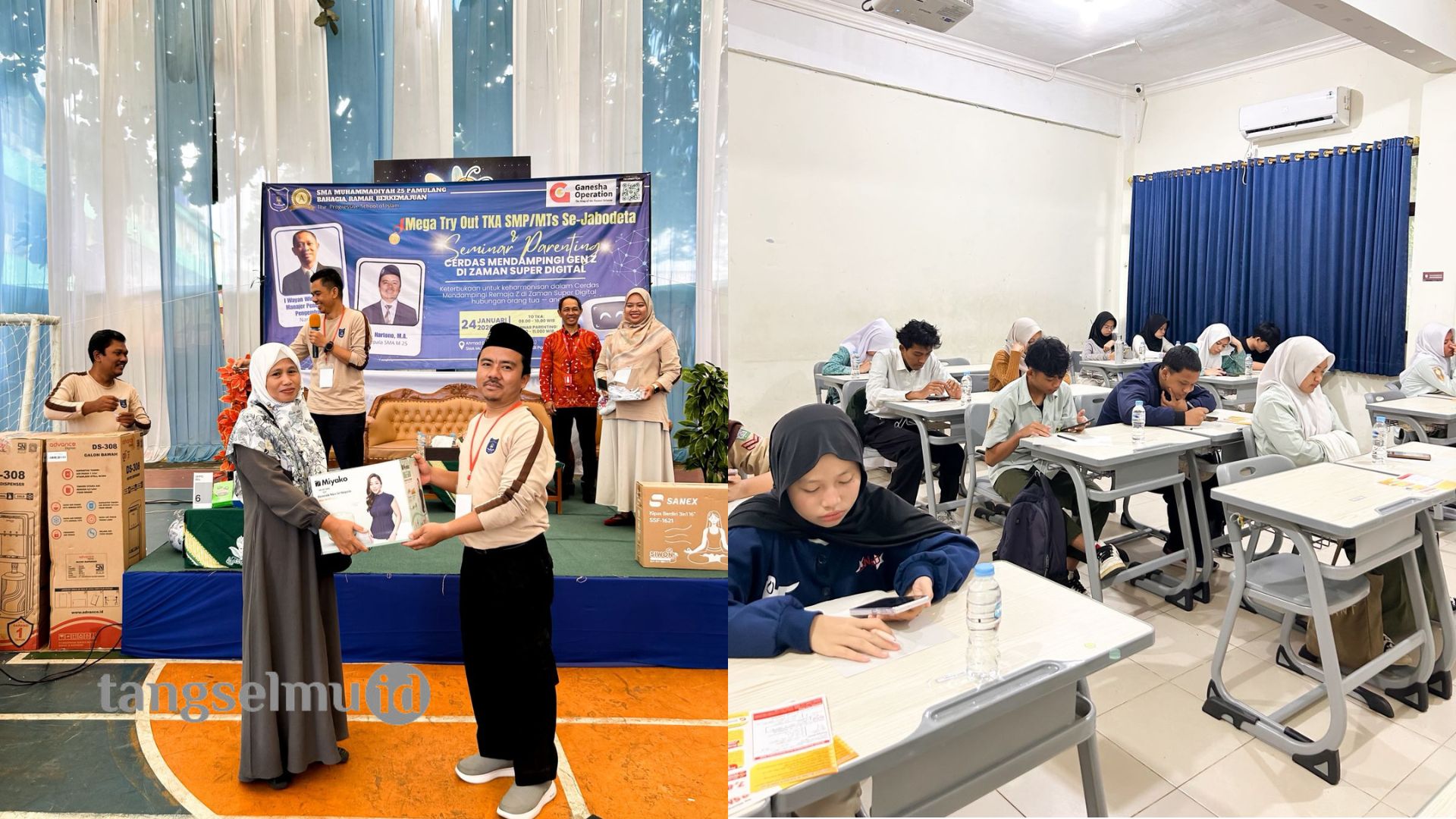 Menariknya, saat para siswa bergelut dengan soal-soal ujian, orang tua mengikuti seminar parenting di ruang terpisah. Seminar tersebut mengusung tema Cerdas Mendampingi Gen Z di Zaman Super Digital.